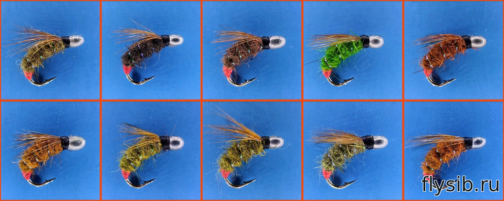 9 шт. Мушки на крючке SCUD № 10