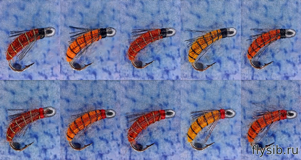 9 шт. Мушки на крючке SCUD № 10
