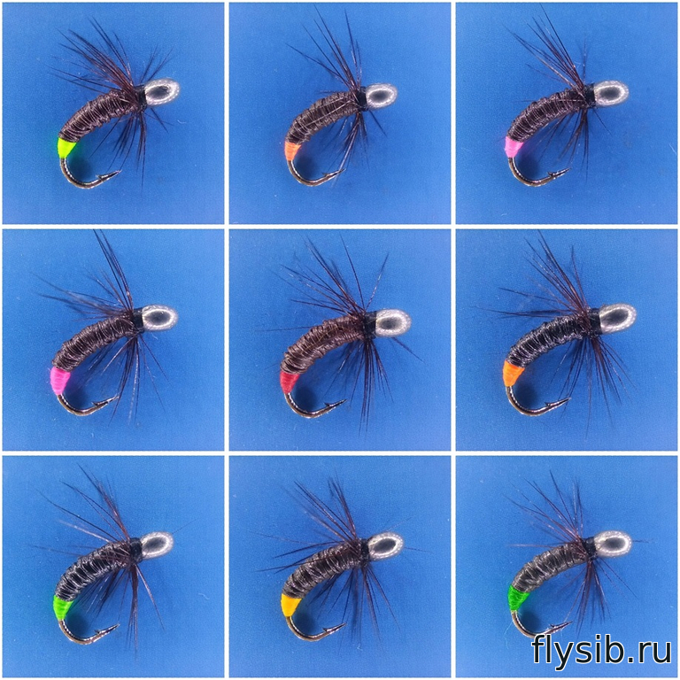 Набор из 9 мушек на крючке SCUD № 12